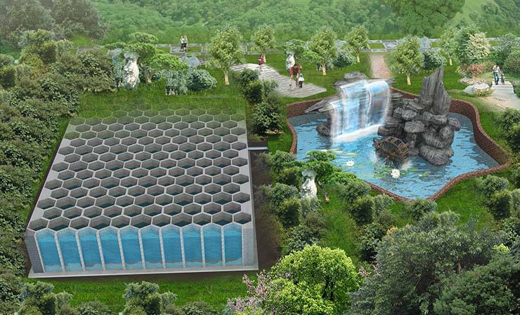 在條件允許的情況下,還可以在大型娛樂場所的屋面修建大型的水上樂園,高價引進雨水凈化設備,通過人工和自然兩種方式凈化積蓄的雨水,同時采用吸熱透明玻璃木屋面,利用太陽能技術對水體和室溫進行溫度控制,這樣做不僅減少了水資源的浪費,而且解決了長期困擾經營者的熱能源問題,其產生的經濟價值遠遠超過了引進凈水設備的成本。